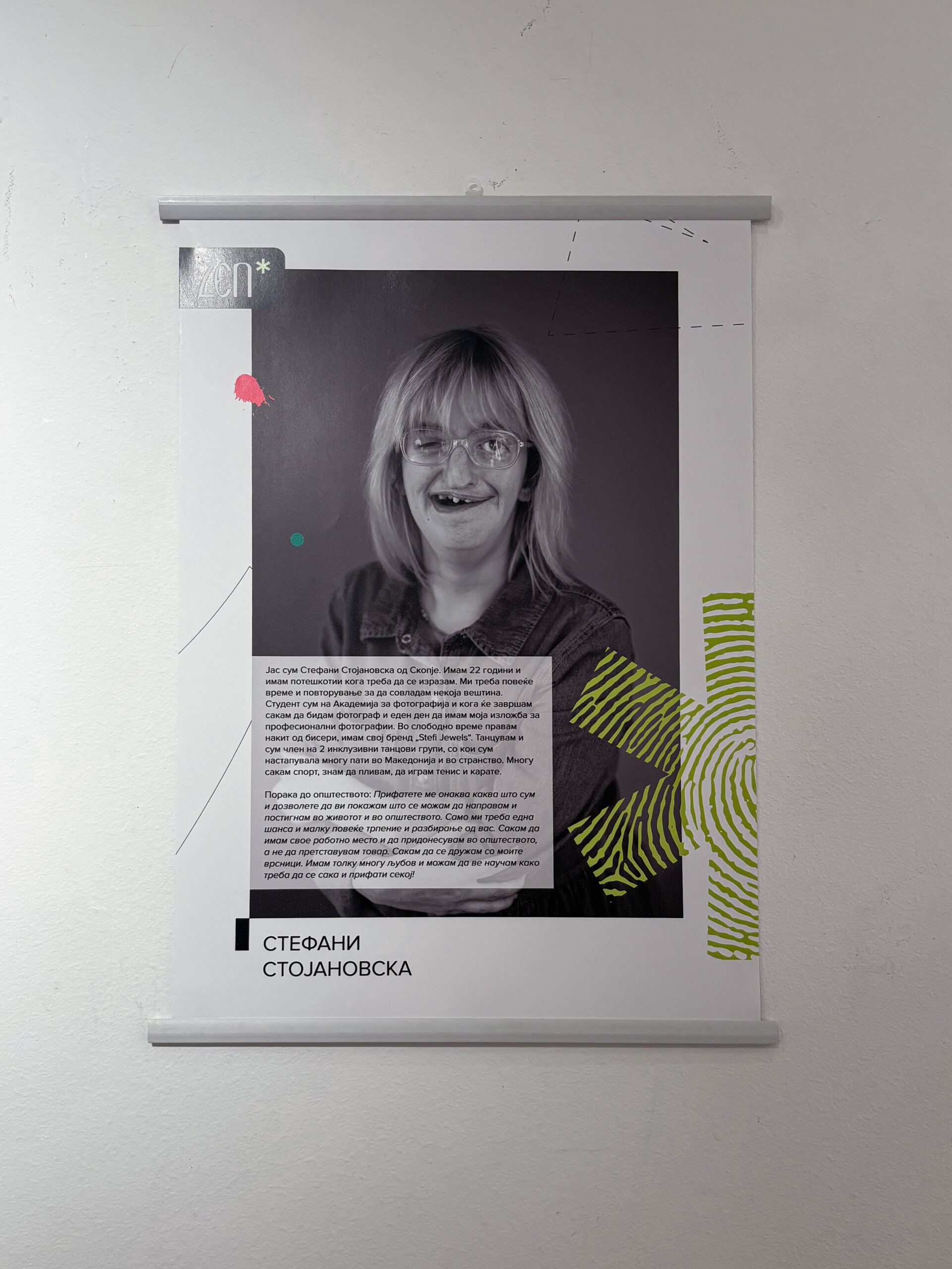 „Преку оваа патувачка изложба, не само што изложуваме 32 портрети на лица со попреченост, кои сами ја раскажуваат нивната приказна за силата, љубовта и нивната животна мисија, туку и се залагаме за унапредување на пристапноста и рушење на општествените бариери во сите области.“ – изјави Ружица Стојановска, проектен координатор во Здружение Икуалити.